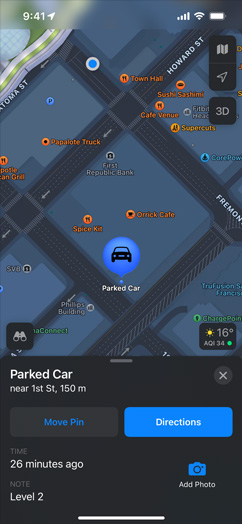 Choose a destination, and its interactive place card shows you everything you need at a glance. See basics like address, hours, website and phone number, along with details like price range, photo galleries, associated Guides, accepted payment types — even whether you can bring your dog. Launch Flyover or Look Around to get a sense of the location and surroundings. You can even quickly and securely rent a bike, pay for parking, order food and more with just a tap. And for places that use Business Chat, you can reach out and ask questions directly in Messages.