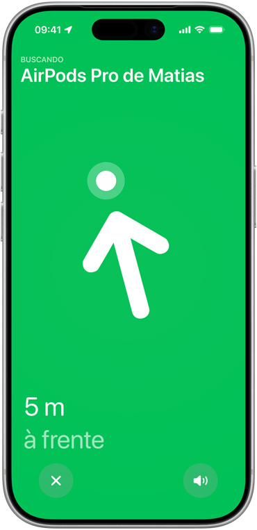 Encontre facilmente o lugar exato onde você deixou seus AirPods Pro. Uma nova geração da tecnologia de banda ultralarga no estojo de recarga aumenta a distância da Busca Precisa em 1,5 vez11. E, com um alto‑falante integrado ao estojo, você consegue encontrar seus AirPods mesmo que estejam perdidos no sofá.