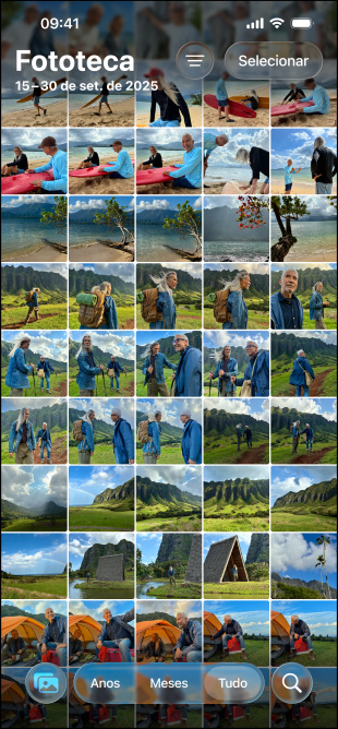 Tela do iPhone 17e mostrando várias fotos na Fototeca