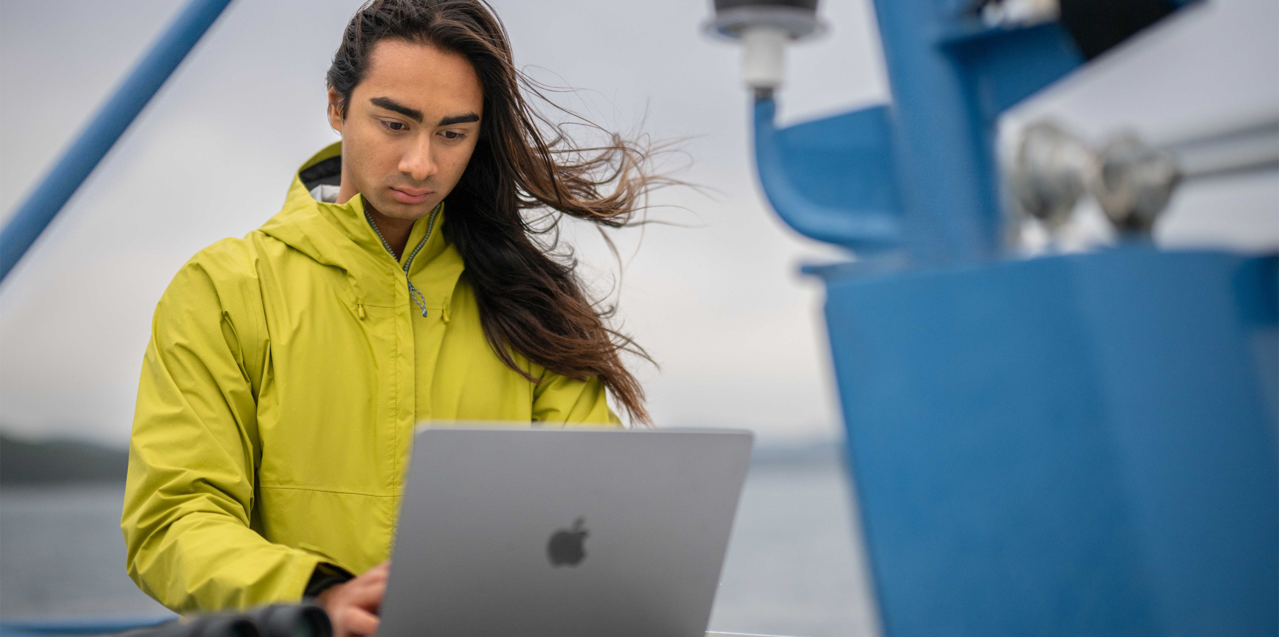 Les technologies Apple aident aussi Bodhi à réaliser et synthétiser ses travaux de recherche universitaire, par exemple lorsqu’il s’agit d’illustrer les effets de l’activité des navires sur la population d’épaulards résidents du Sud – une espèce en voie de disparition – dans la mer des Salish. Équipé de son MacBook Air, de son iPhone et de ses jumelles, Bodhi peut mener son travail de terrain depuis un navire. Il consigne dans Numbers les endroits où des épaulards ont été observés, puis utilise Keynote pour créer des diagrammes et des cartes de densité montrant les endroits où les animaux traversent les secteurs les plus fréquentés par les traversiers, ce qui permet de mieux cerner les risques de perturbation de ces populations. Bodhi se sert aussi d’iPhone pour prendre des photos et enregistrer des vidéos à l’appui de ses observations.
