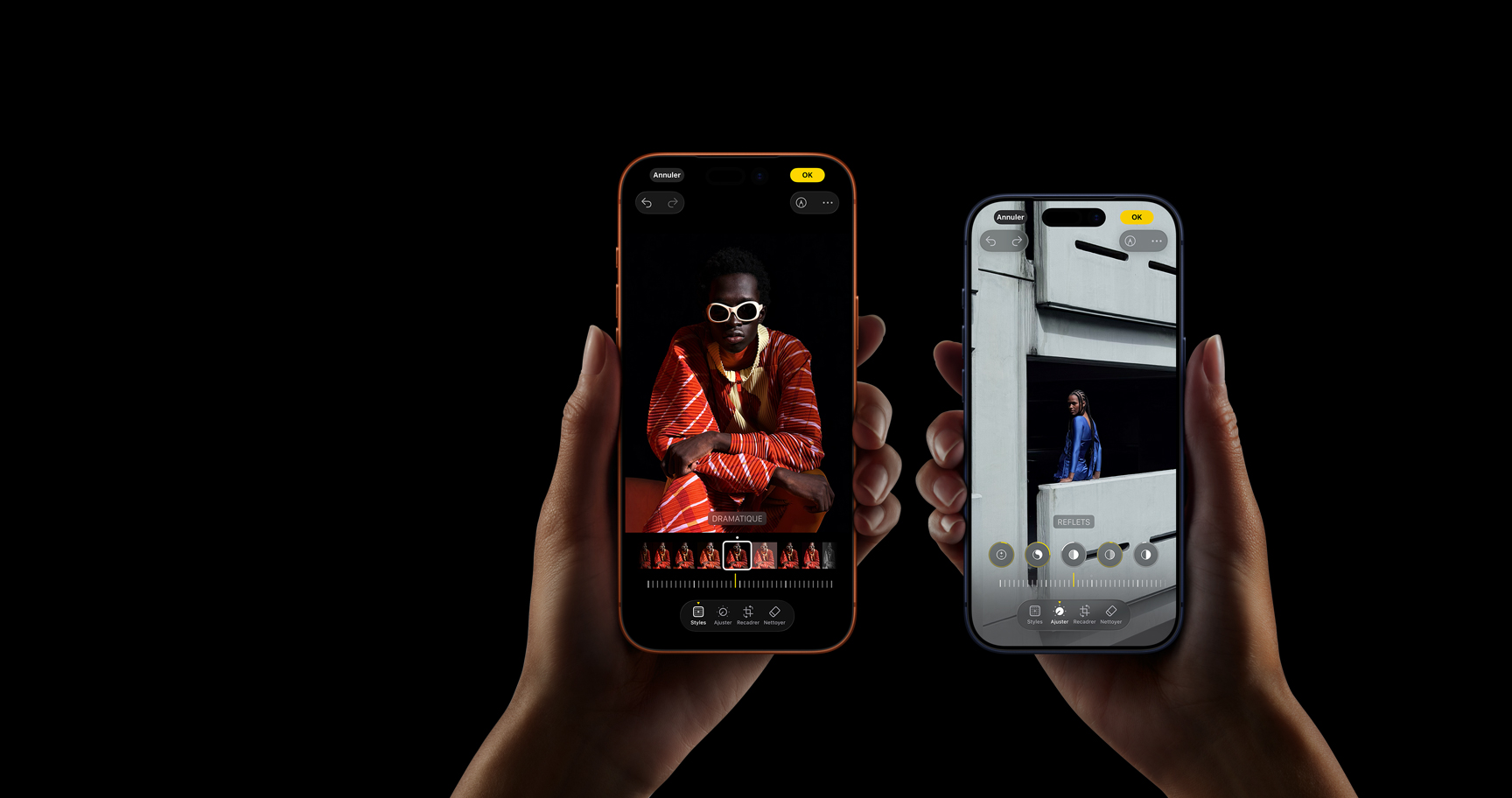 iPhone Air est l’iPhone le plus fin qui soit, propulsé par la puce A19 Pro. Son design surpasse tous les modèles d’iPhone précédents en termes de durabilité : cadre en titane poli, face avant en Ceramic Shield 2 avec 3x la résistance aux égratignures, et dos en Ceramic Shield 4x plus résistant aux fissures. Il intègre la nouvelle caméra avant Center Stage, pour des selfies de groupe optimisés et la vidéo double capture, une caméra principale Fusion 48 Mpx avec téléobjectif 2x qui prend en charge les plus récentes innovations, dont les portraits nouvelle génération, ainsi qu’un écran Super Retina XDR 6,5 po immersif avec ProMotion jusqu’à 120 Hz. Tout ça avec une autonomie d’une journée. Et des fonctionnalités Apple Intelligence utiles au quotidien, comme l’outil de nettoyage.