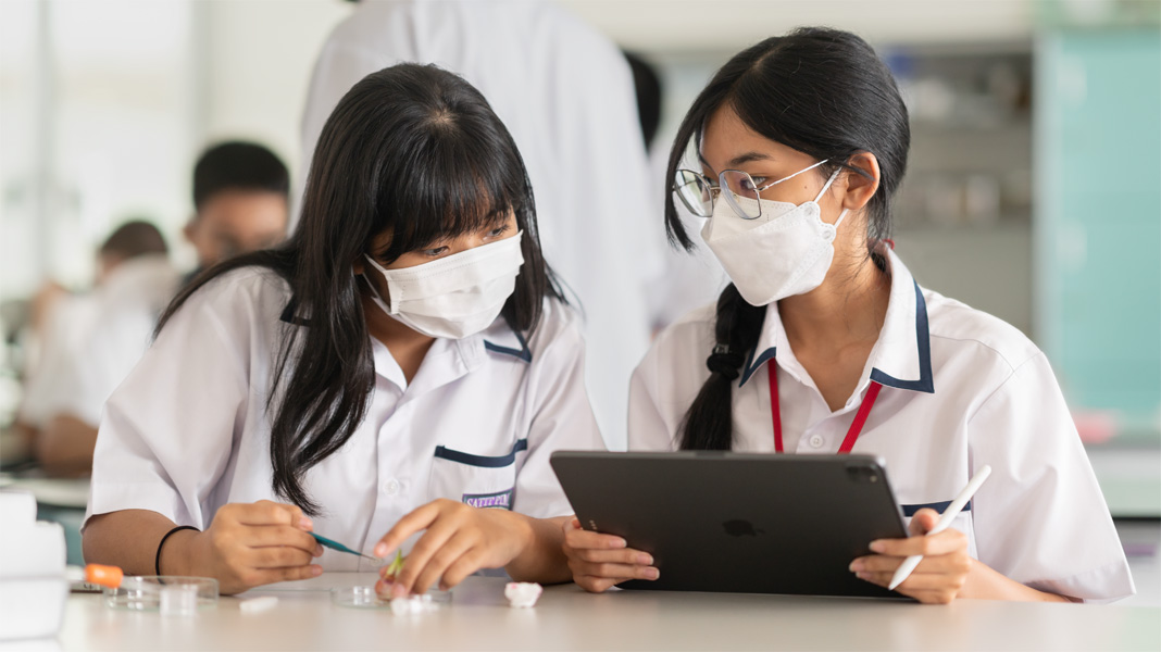 At Panyapiwat Institute of Management Demonstration School, educators use technology in creative and engaging ways. And they’re recognized for it: Every teacher is Apple Teacher certified and earns badges through the free Apple Professional Learning program. This program teaches educators foundational skills on iPad and Mac as well as how to use Apple apps specifically created for teaching and learning. One example is the Schoolwork app, which allows teachers to collaborate one on one with students easily and in real time — creating an environment where everyone feels seen, heard, and connected.