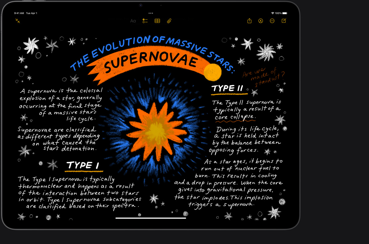 Apple Pencil näitab, milline peaks olema joonistamine, maalimine, käsitsi kirjutamine ja märkmete tegemine – vaistlik, täpne ja maagiline. Ja kõike seda ideaalse pikslitäpsuse, väikese latentsusaja, kaldetundlikkuse ning võimalusega oma kätt töötades ekraanile toetada. Ja Apple Pencil Pro lisab veelgi enam võimalusi, et sinu ideed enneolematul moel ellu tuua.3