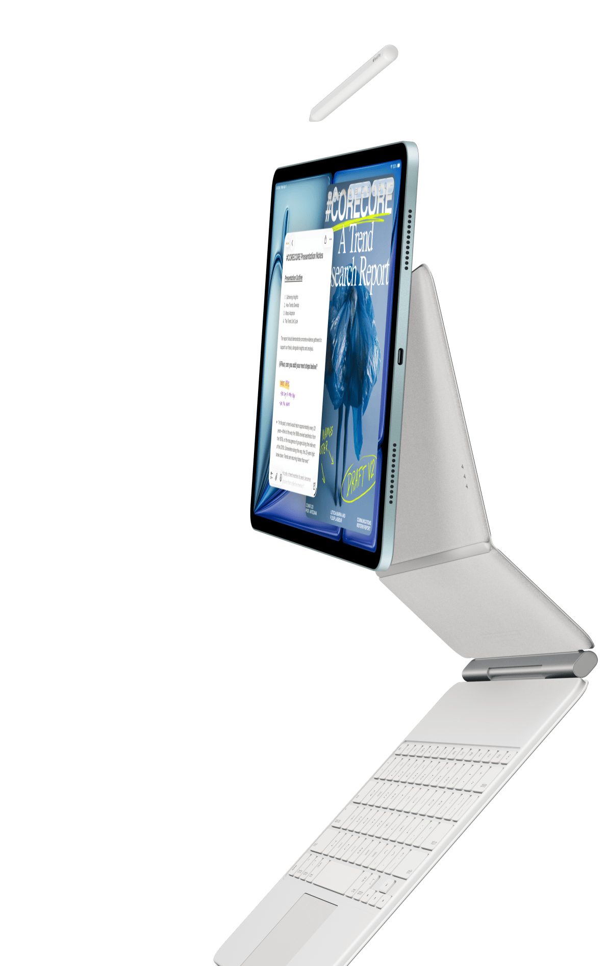 A villámgyors M4 chip 50 százalékkal nagyobb egyesített rendszermemóriával magasba emeli a teljesítményt, hogy bármit könnyedén megvalósíthass az iPad Airen, amit csak szeretnél. Egy igazi AI-erőmű, mellyel a mindennapokban használt AI-funkciók és képességek révén gyorsan és erőfeszítés nélkül elvégezheted a teendőidet. A GPU-architektúra pedig még gördülékenyebb és magasabb szintű grafikát nyújt, akár dolgozol, streamelsz, alkotsz vagy játszol. Mindez bámulatos hatékonysággal párosul, hogy az aksid is egész nap bírja.4