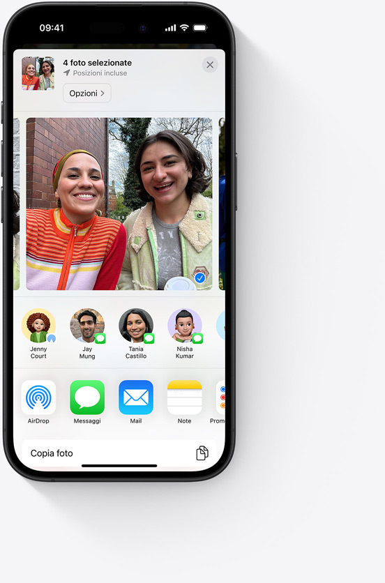 Con la Libreria foto condivisa di iCloud puoi condividere facilmente scatti e filmati con altre cinque persone. Li troverai nella sezione “Foto in primo piano” e nei Ricordi, così potrai rivivere i momenti speciali passati insieme guardando le immagini scattate da tutti.