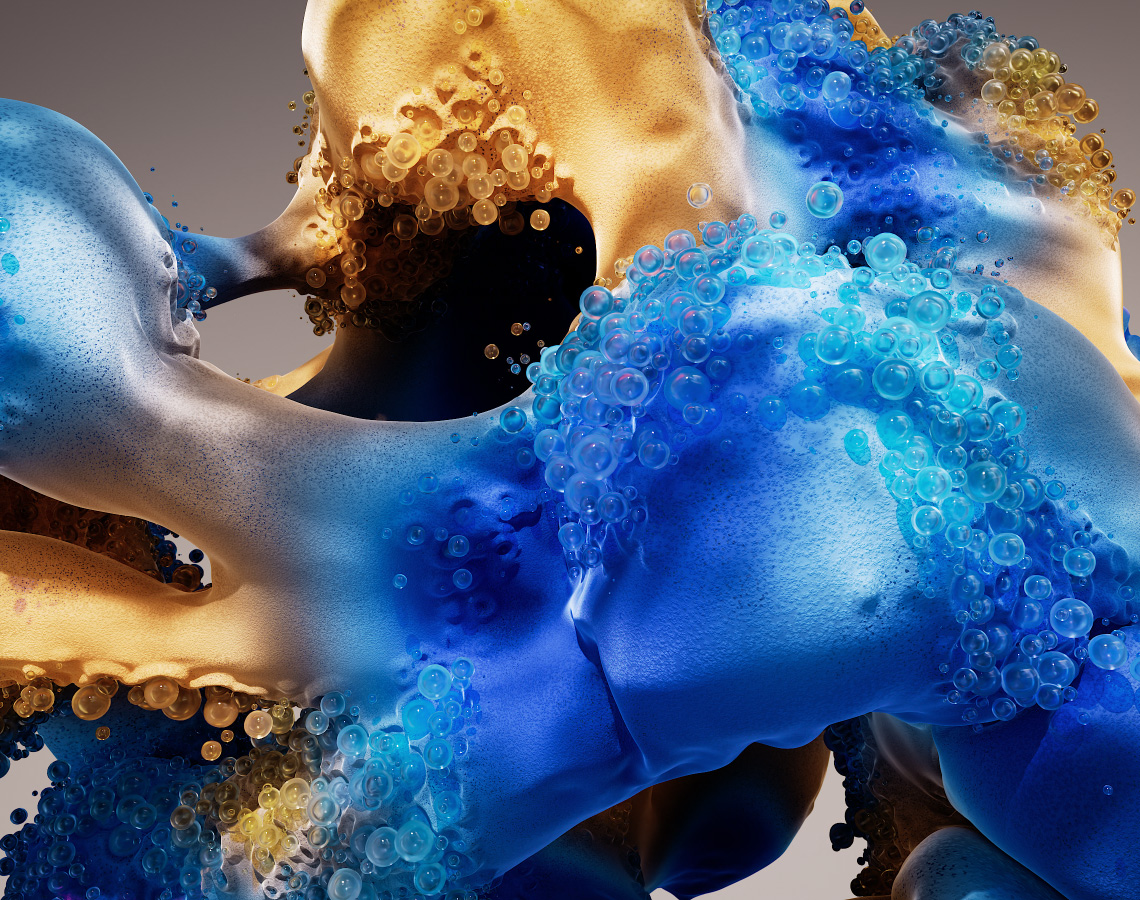 MacBook Pro screen showing a bubble animation created using Cinema 4D