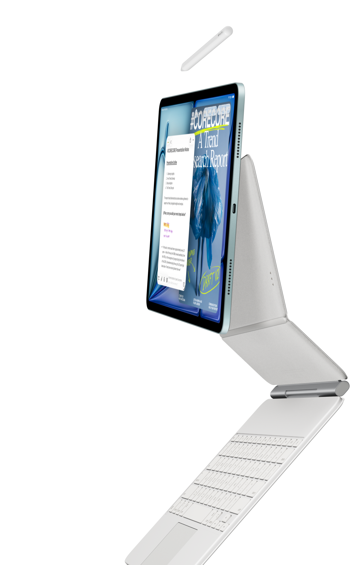 iPad Air attached to Magic Keyboard for iPad Air and Apple Pencil Pro
