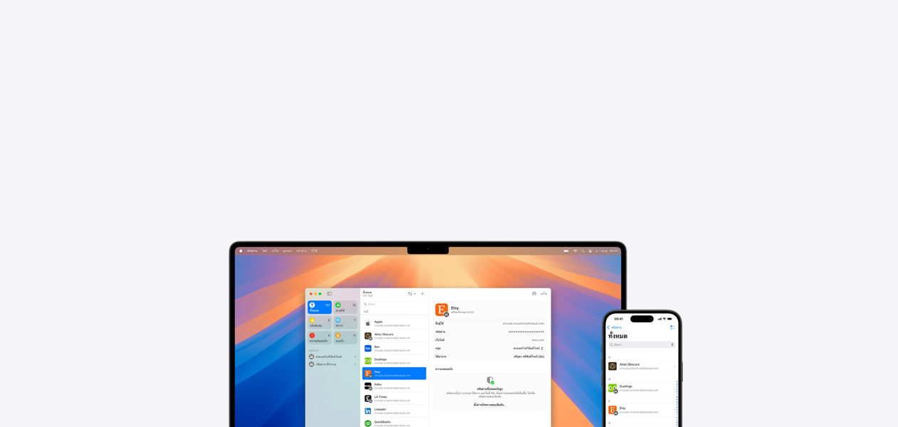 พาสคีย์ และข้อมูล ประจำตัวอื่นๆ ได้ง่ายๆ ในที่เดียว และยัง ลงชื่อเข้าใช้ ได้อย่าง รวดเร็ว ด้วยคุณสมบัติ การป้อนอัตโนมัติ รับการเตือน เมื่อบัญชี อยู่ในความเสี่ยง และซิงค์ข้อมูล ขณะเดินทาง ใช้ได้กับ