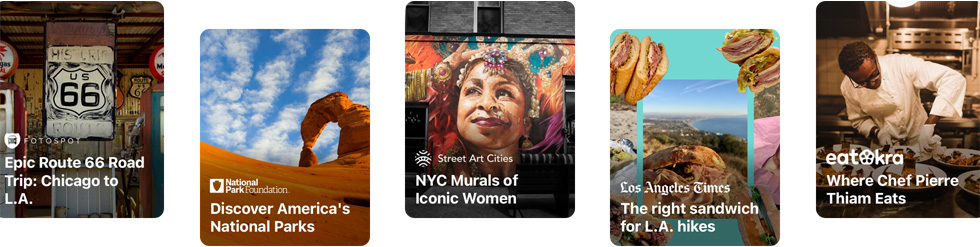 "สถานที่น่าสนใจที่ คัดสรรมาอย่างดี" คือ รายชื่อ สถานที่ที่จัดทำขึ้นโดย พันธมิตร ที่เชื่อถือได้ เพื่อช่วย ให้คุณ ได้ค้นพบ สถานที่ดีๆ สำหรับการกิน ช้อปปิ้ง พบปะเพื่อนฝูง หรือเพียงเพื่อ การสำรวจ แอปแผนที่ มีสถานที่ น่าสนใจ ที่คัดสรร มาอย่างดี กว่า 1,000 รายการ ในเมืองต่างๆ ทั่วโลก แตะ "สำรวจ สถานที่ น่าสนใจ" บนแอปแผนที่ใน iOS 15 เพื่อดู สถานที่น่าสนใจที่แนะนำโดยบรรณาธิการ แอปแผนที่ -