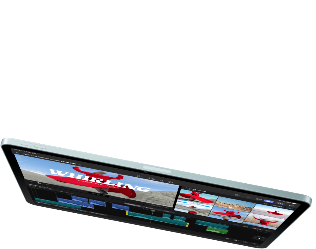 Yatay pozisyonda iPad Air, Final Cut Pro’da video düzenlendiği gösteriliyor