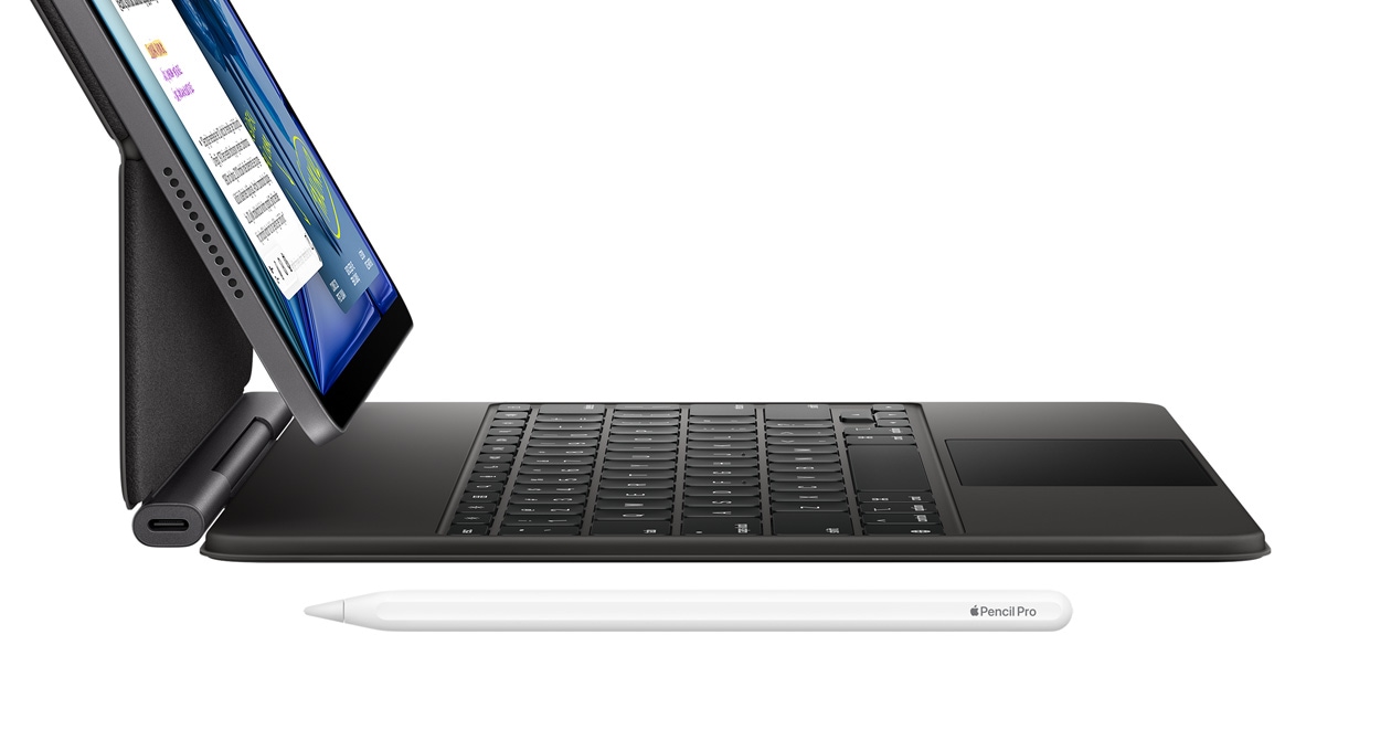 Apple Pencil Pro ve iPad Air için Magic Keyboard’a takılı iPad Air